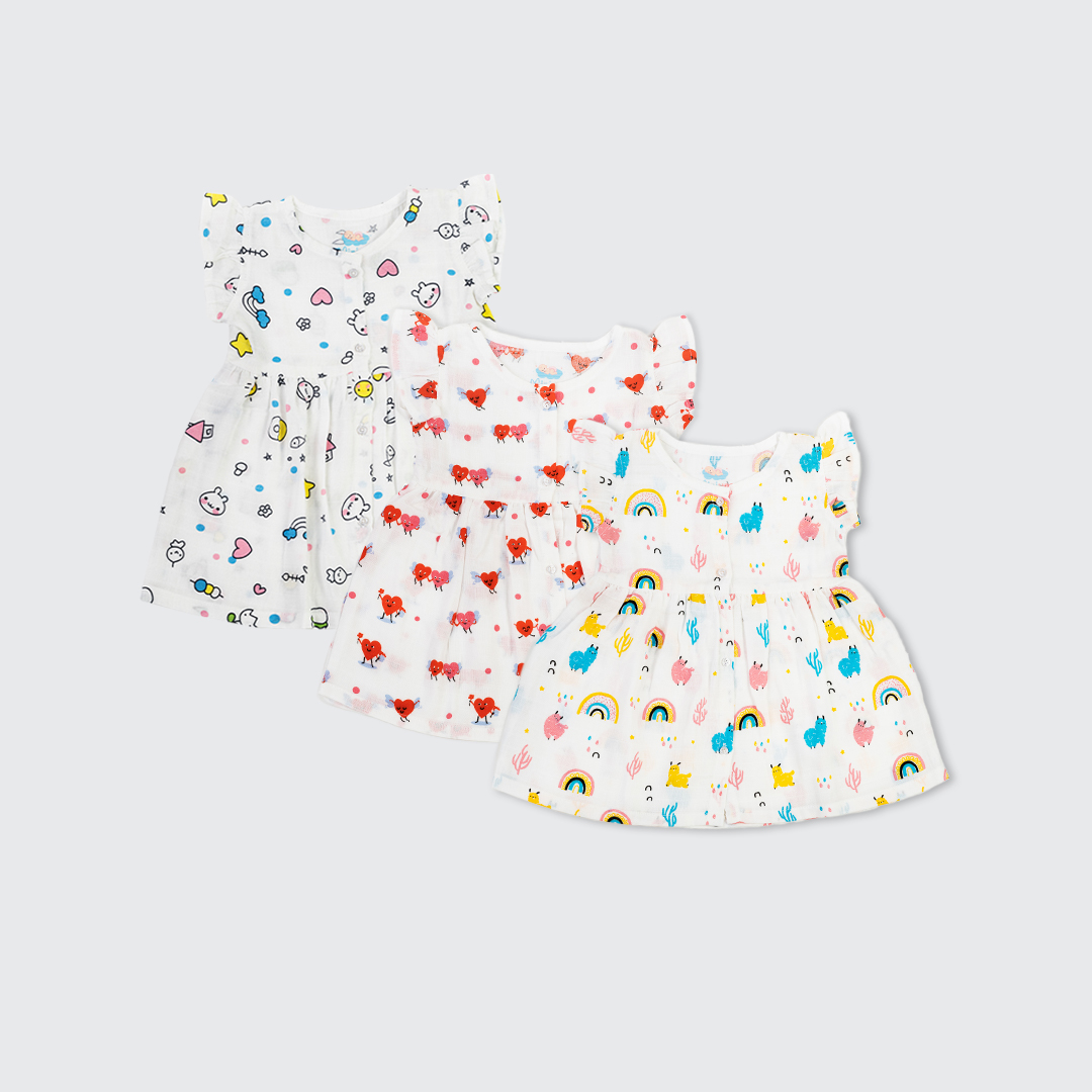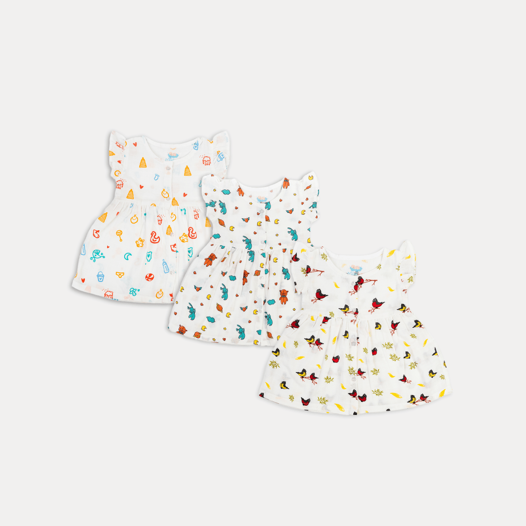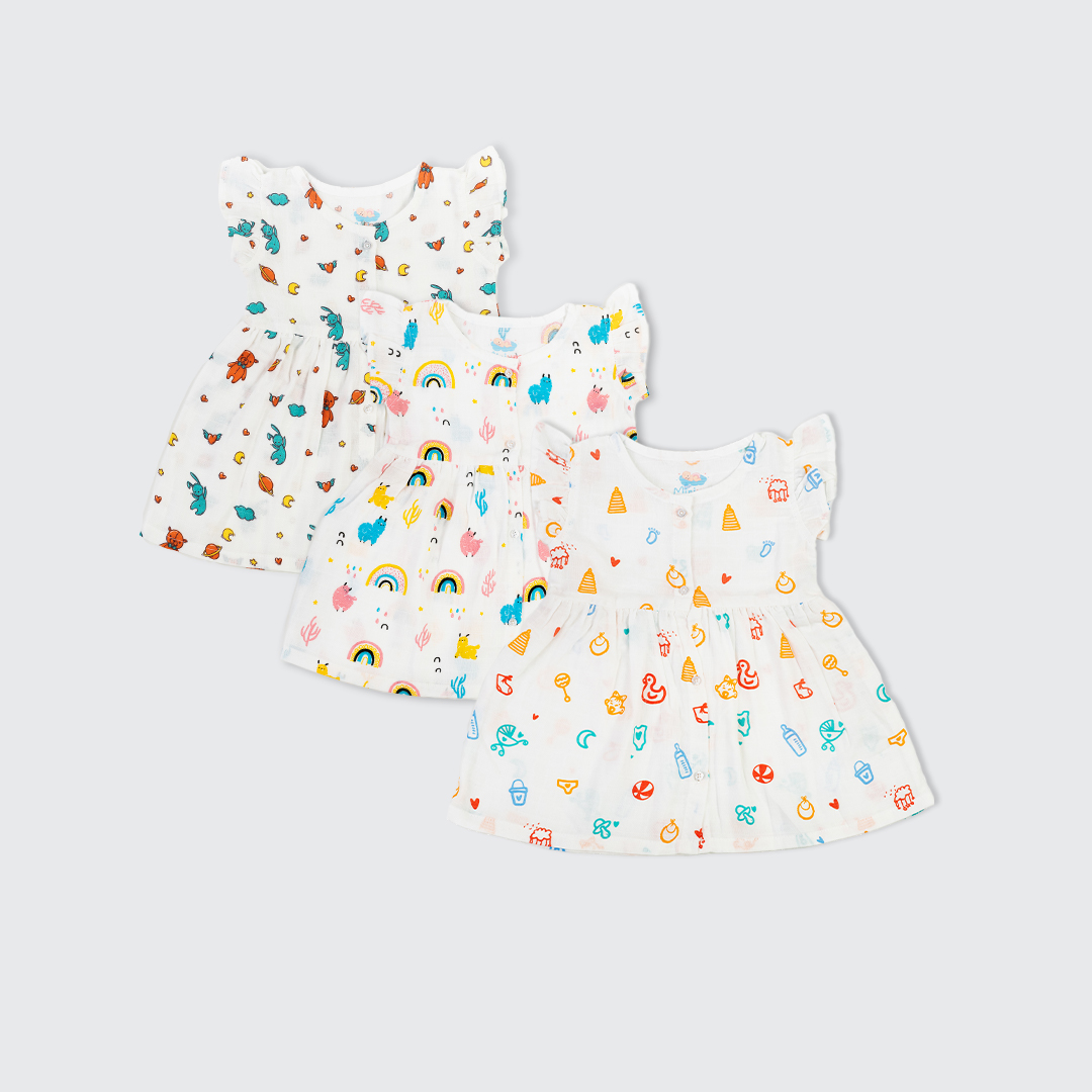 Frocks Birds,Playtime & Sweet Dreams-(Pack Of 3)
